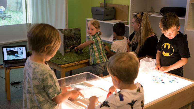 Miljöerna är planerade för att barnen själva eller med stöd av pedagog ska kunna ta fram material som väcker deras intresse.